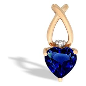 14K Yellow Gold Heart Created Sapphire and Diamond Pendant